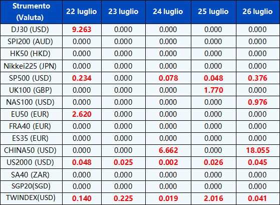 Si prega di notare che i dati sopra riportati sono soggetti a modifiche. Si prega di fare riferimento a PU Xtrader per i dettagli.